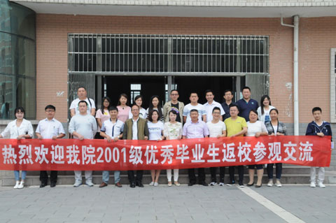 2016年5月20日,我院2001级优秀毕业生张丹、马如财、张双岩、王婷、钟铭五位同学从祖国的四面八方,汇聚母校,共叙同窗情谊,感叹学校发展,对母校的热爱和眷恋之情溢于言表,感情历久弥新。学院在教学楼前拉上了“热烈欢迎2001级优秀毕业生回校参观交流的”横幅,学校领导对2001级优秀毕业生回校参观非常重视,并为此做了大量准备工作。院理事长、常务院长穆耀辉,教务处长马放奇,教务科长周军侠热情接待了2001级毕业生。并带领2001级毕业生参观了实训中心、创业中心、学生食堂、教工食堂、图书馆等校园设施和环境。2001级毕业生兴高采烈地漫步在校园,饶有兴致地倾听学校领导讲解后,为学校翻天覆地的变化而感慨不已,大家纷纷合影留念,留下美好的回忆。随后的座谈会上,院理事长穆耀辉代表学校对2001级学生回到母校表示了热烈的欢迎,对他们长期的关心、支持表示衷心地感谢,他为2001毕业生介绍了近年来学院的发展状况和规划。学生代表马如财经理代表2001级毕业生讲话:感谢学校领导和工作人员的盛情接待,并祝母校越办越好。